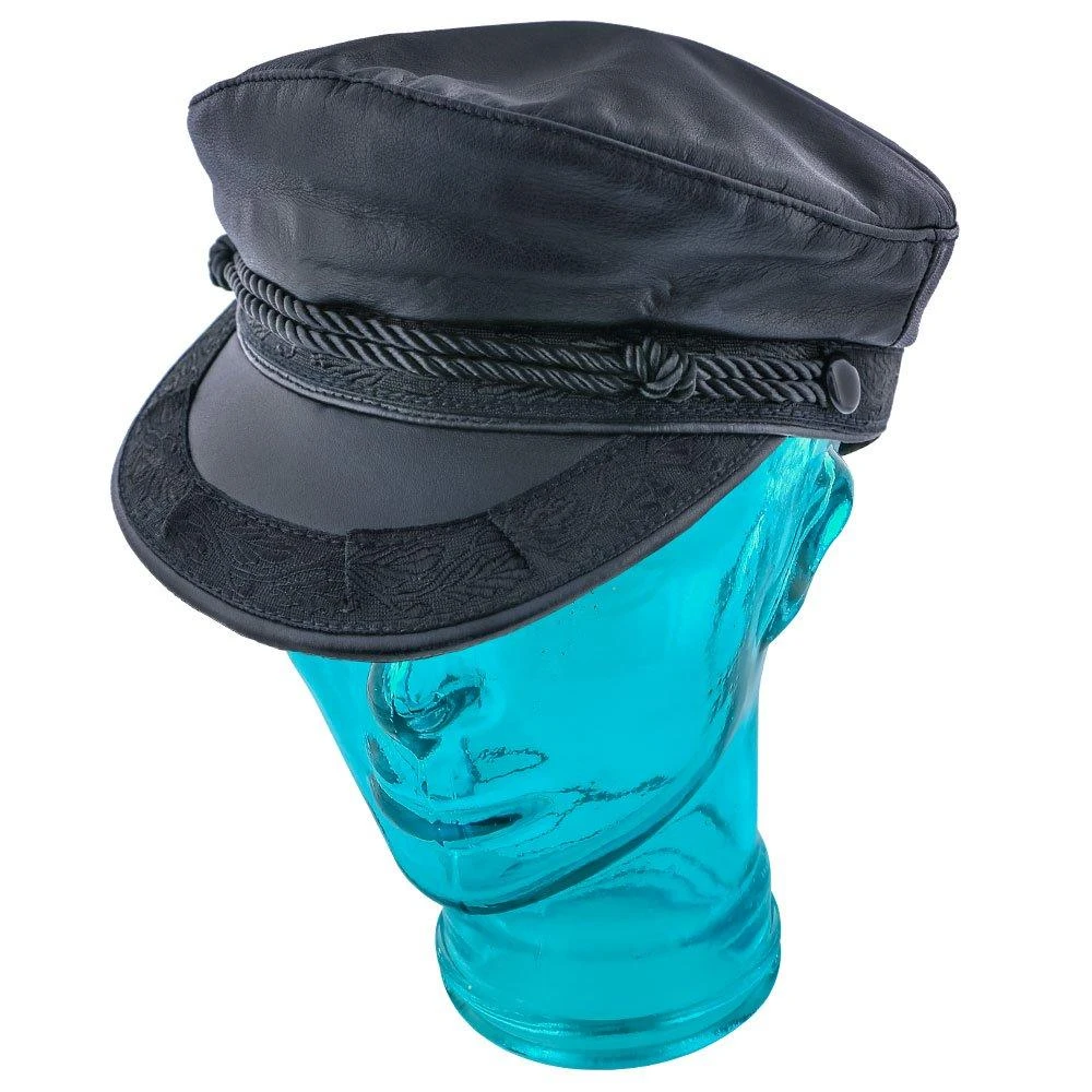 Stylish with its natural leather material, our Aegean AEG103 leather Greek fisherman hat adds a new look to any casual wardrobe. Featuring a dual silver and black weave across its front, center and back, this hat displays a long brim for shielding the eyes on a sunny day. With its eye-catching design coupled with precise stitches, the owner of this Greek fisherman hat will enjoy making a fashion statement while wearing it at the beach.