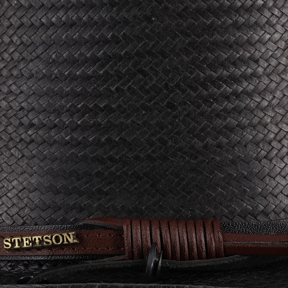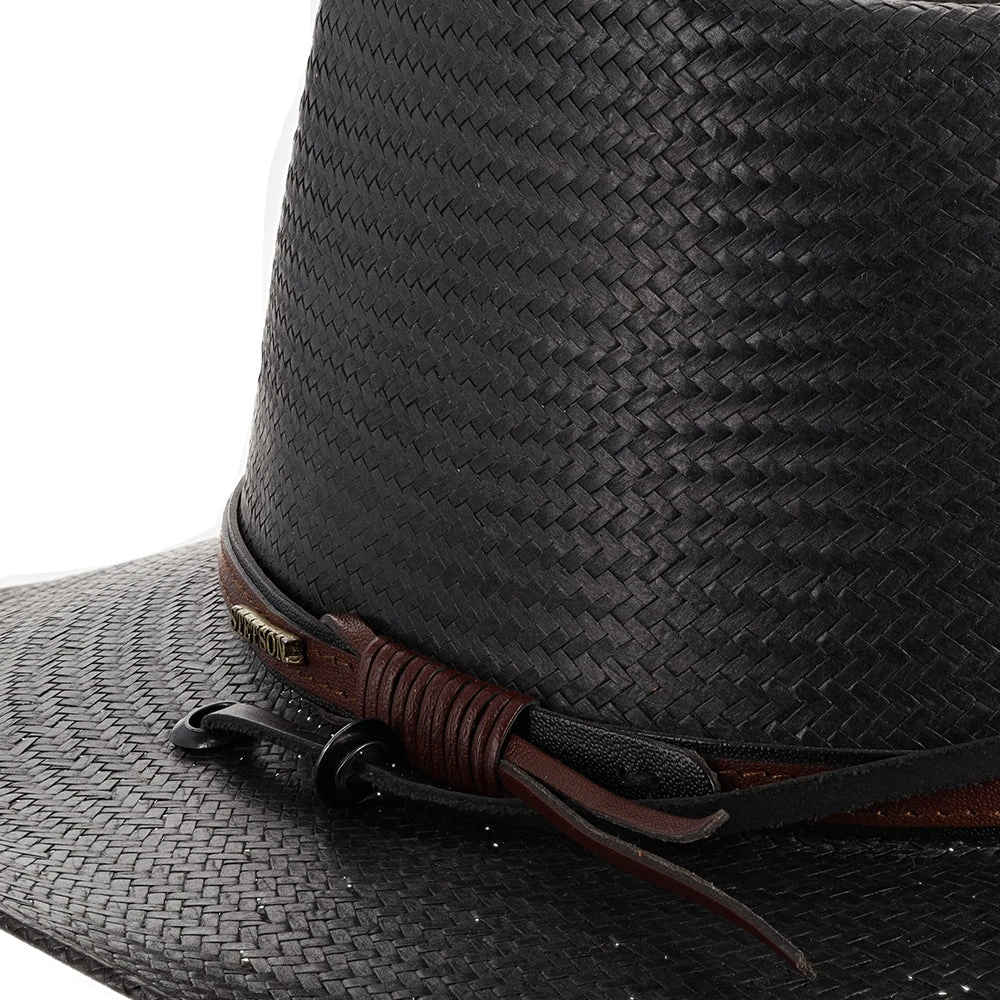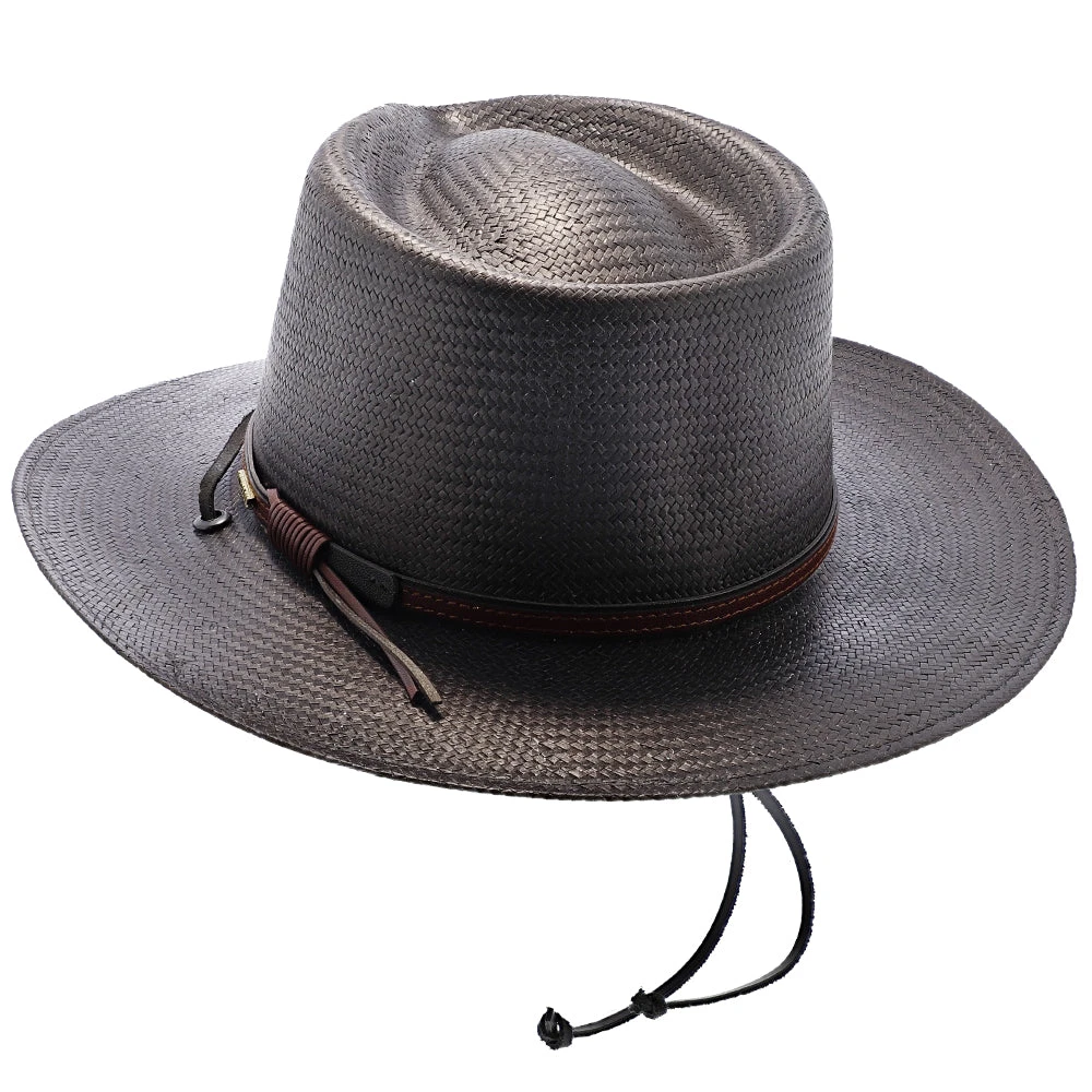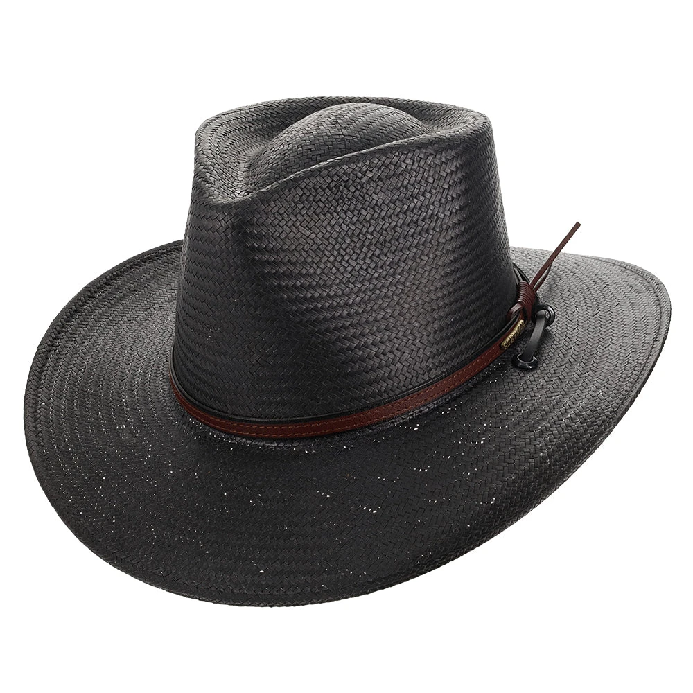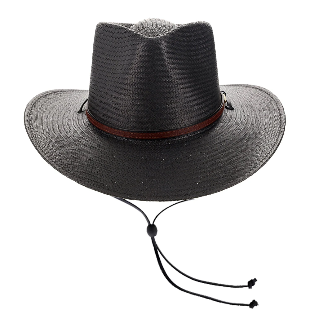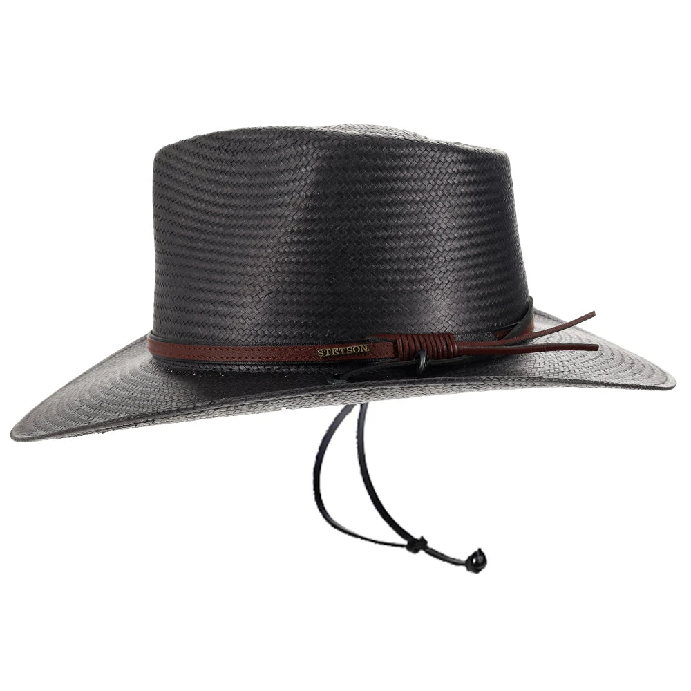 The Belgrade Shantung Straw Western Hat by Stetson gives that classic, cowboy look from the old West. Made from 100% shantung straw, this hat has a flexible brim and sturdy crown. There is a stylish, textured leather band wrapped around the crown, with the metal Stetson logo on the side. You can adjust the leather tassels with the circular, wooden toggle on the back. The hat’s sweatband is made out of cotton twill, which is a light-weight, breathable fabric for maximum air flow.