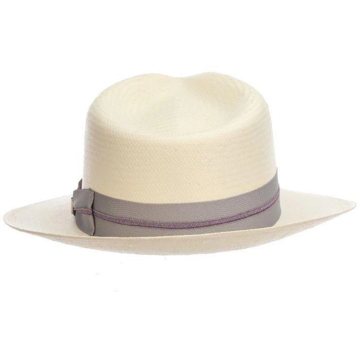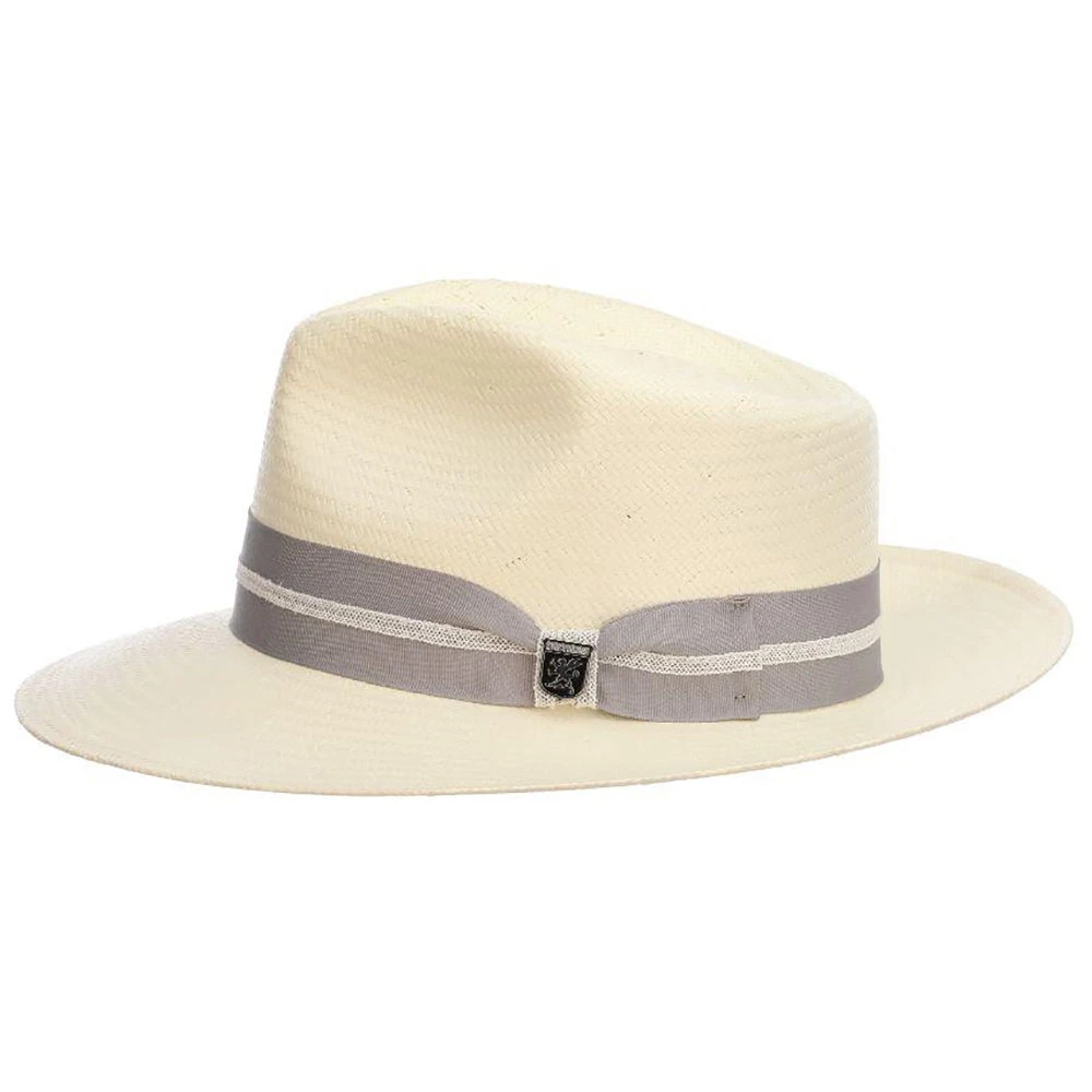 The Stacy Adams Bennett Toyo Straw Fedora is a lightweight and breathable summer hat this is sure to be a hit this season. The toyo straw boasts a beautifully natural light coloration that is perfect for matching with bright summer colors. This hat features a traditional fedora construction including an indented teardrop crown as well as a slight pinch at the crown’s front. The grosgrain hat band features an intricate web overlay and an elegant hat pin to top off this regal look. The hat band itself is available in three gorgeous tones that are sure to suit anyone’s summer wardrobe. This hat’s brim is approximately 2 ½” wide to provide moderate shade for the face and eyes on hot summer days.