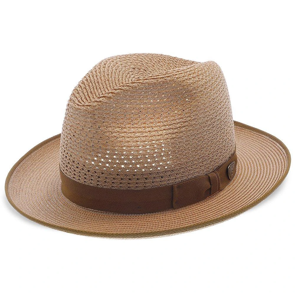 The Regalis pairs the timeless elegance of a Fedora Hat style with a vented and breathable straw construction, making it perfect for outdoor wear on warm afternoons. This hat is available in deep black, rich cognac, and light beige colors that are all paired with a fabric hatband adorned with a genuine Dobbs pin. The leather sweatband inside is a nice touch that adds an extra layer of comfort to this straw Fedora Hat. The crown height is approximately 5″, as is standard for a Fedora Hat style. The moderate 2.5″ brim pairs well with the classic construction of the hat. Give your spring or summer look a touch of refinement with the stunning Regalis by Dobbs!
