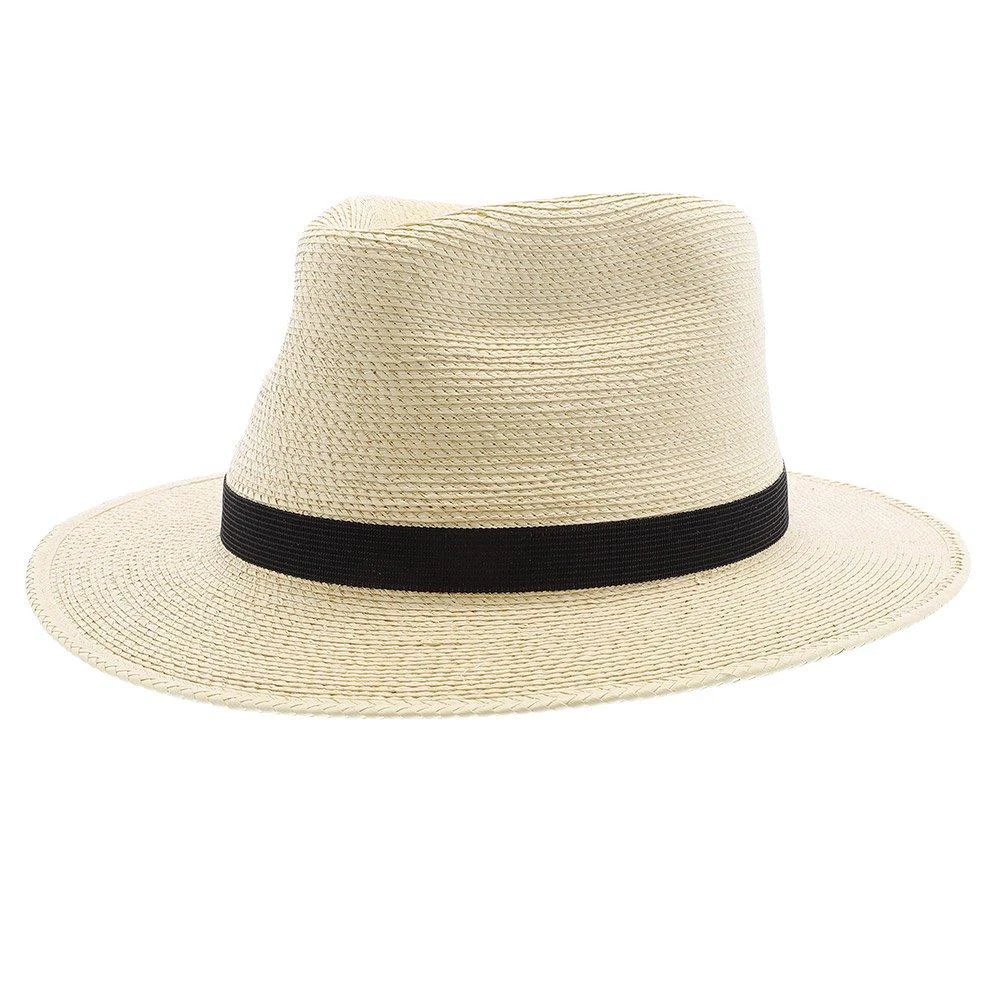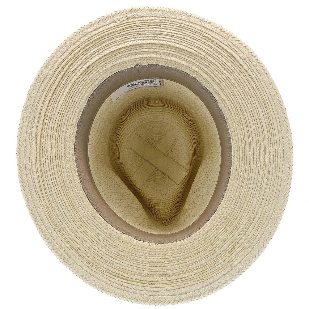 ​The Fine Palm Tear Drop Fedora – Natural Hand-Woven straw hat is a fabulously fetching fedora with a lightweight and breathable construction. This unique straw has a light coloration with an exquisite, almost-ivory tone. The black fabric hatband offers a pop of contrast and makes this look a real head-turner. The teardrop crown features a pinched front to combine the classic look of a fedora with the easy wearability of a straw sun hat. The moderate brim is approximately 2.5†wide while the crown measures in at roughly 4.5†at its highest point.