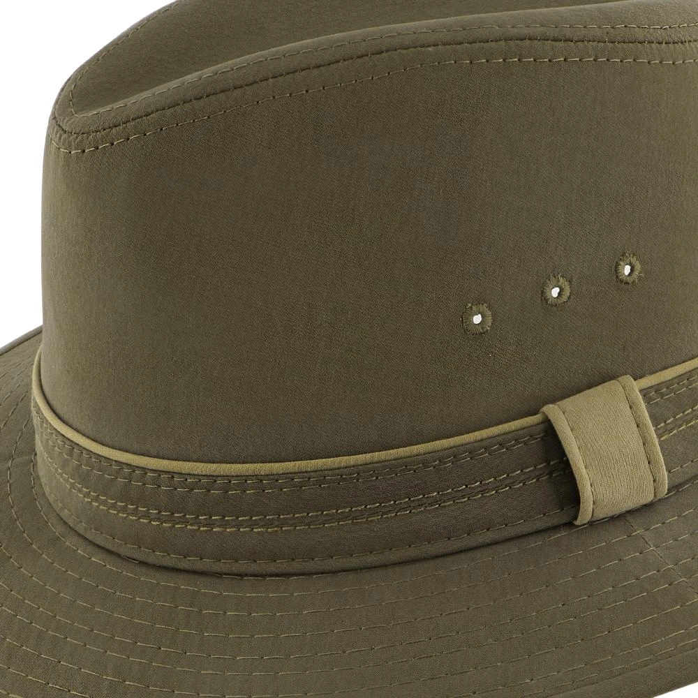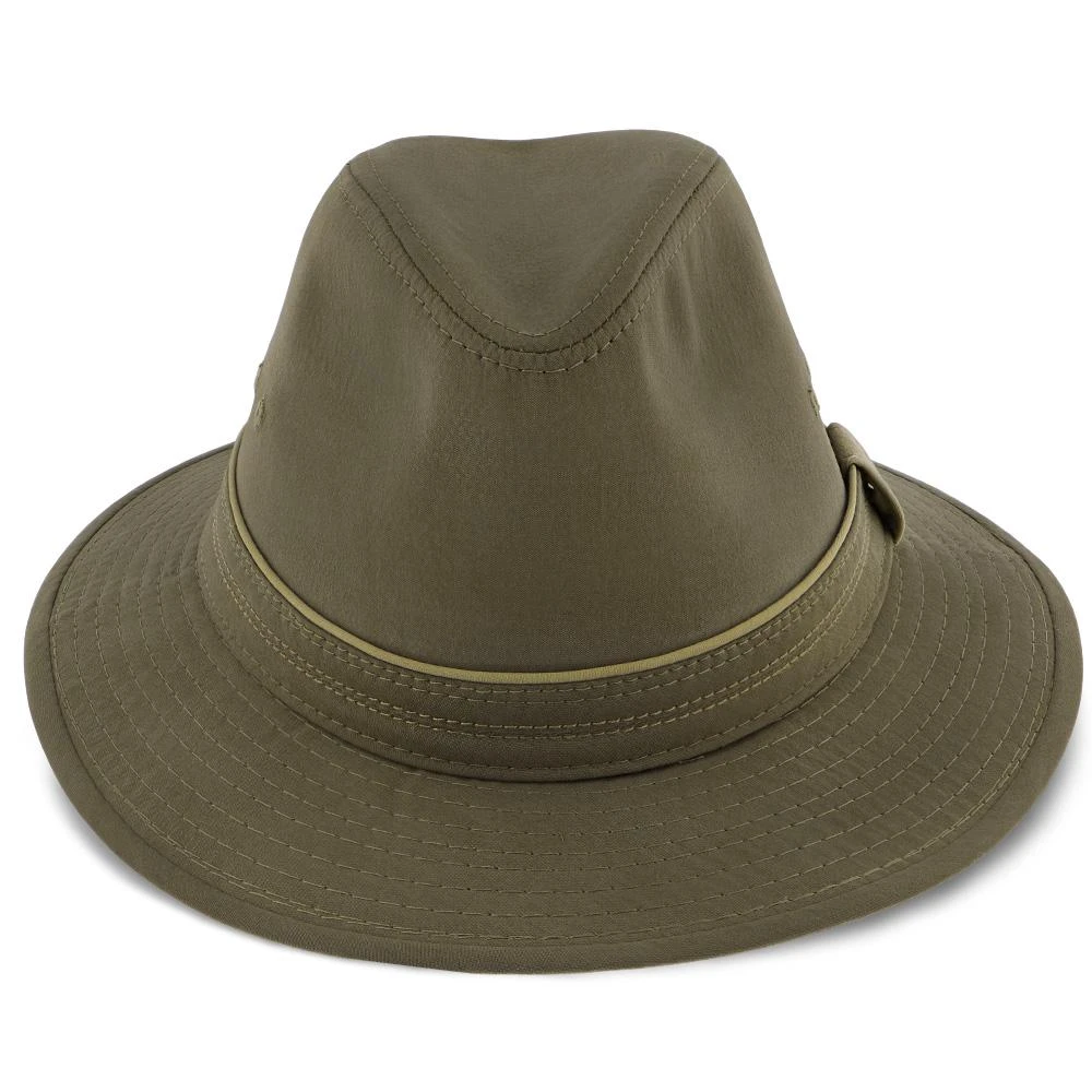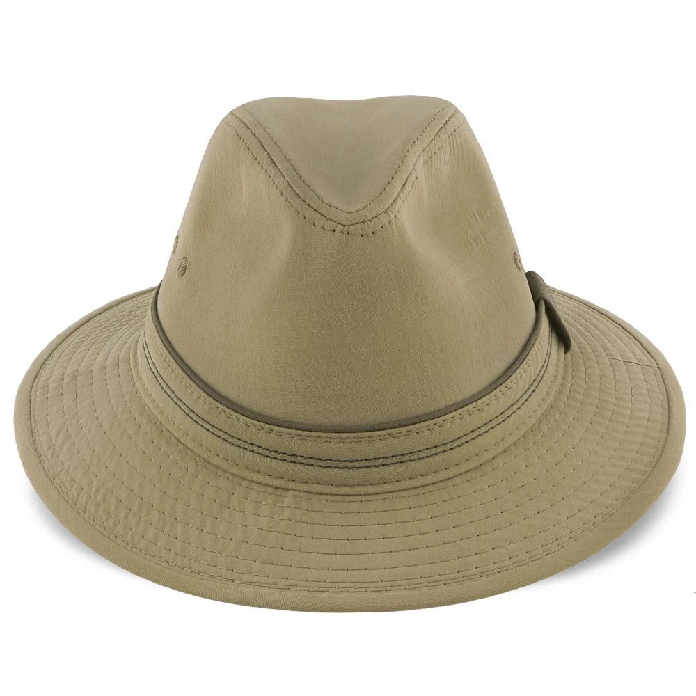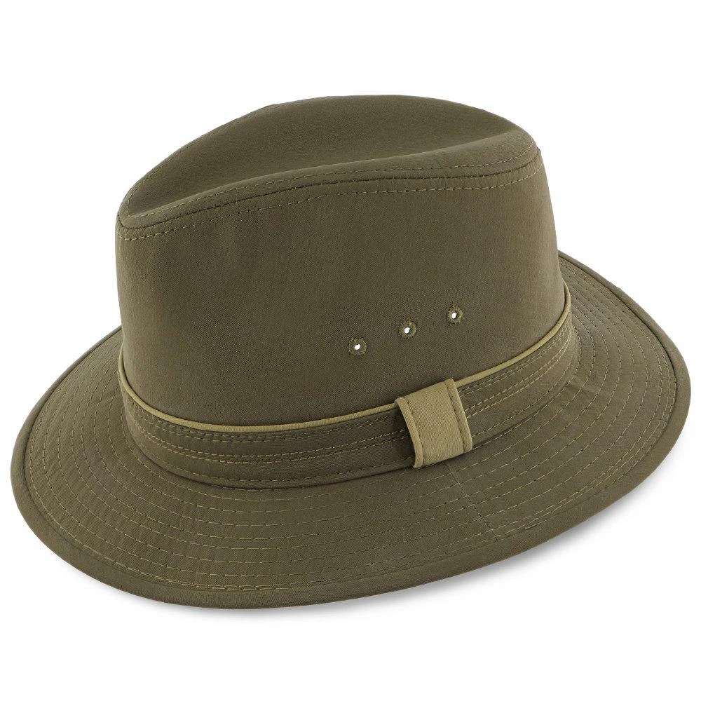 The Safari style hat available in the color choices of khaki and fossil is a great choice for both men and women. It is made from a cool cotton blend with a mesh lining that lets your head and hair breathe. The brim measures two and a half inches and the hat generally looks smart and stylish. Wear it during the spring and summer months while out on a date at night, for going to the office or for a trip to the museum or art gallery. Be sure to match it up with your favorite similarly hued shirt, jacket or pants.