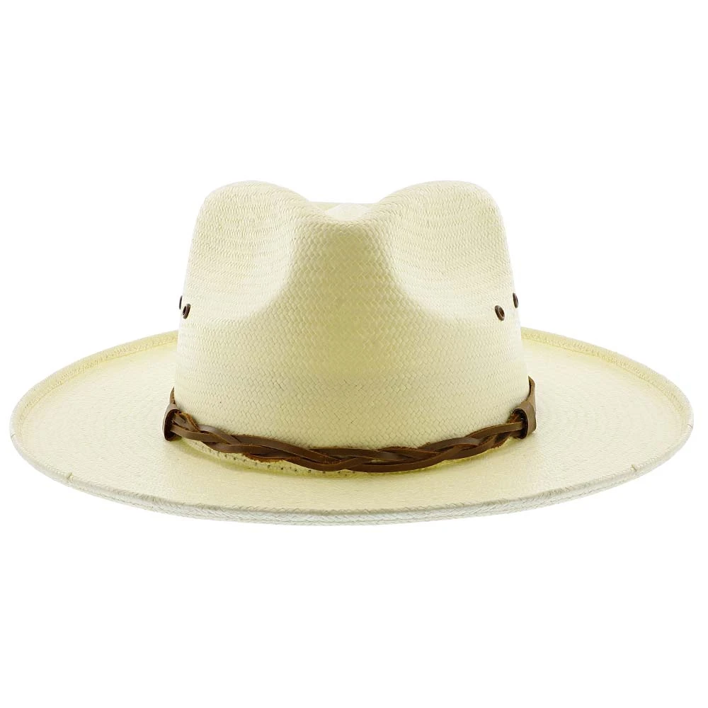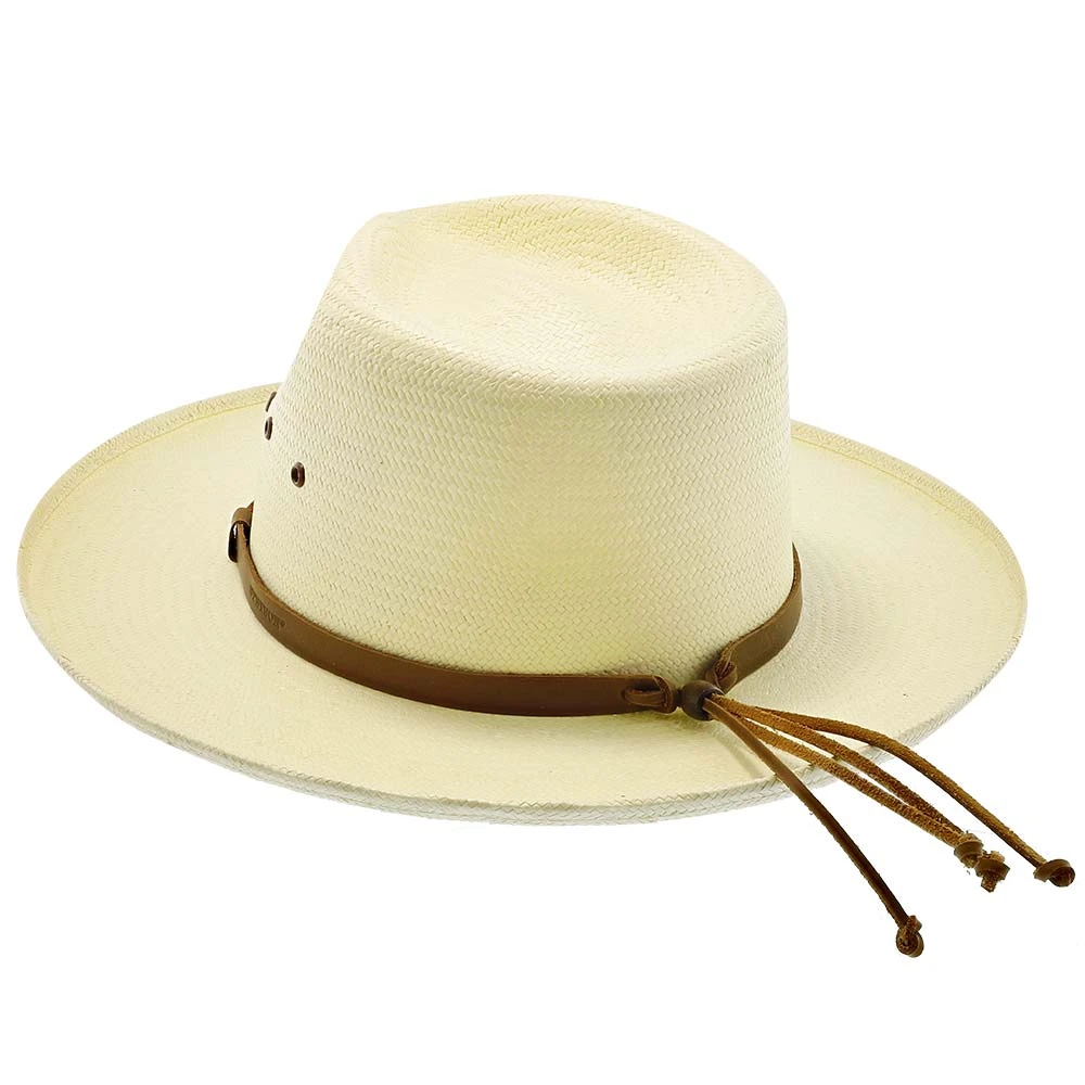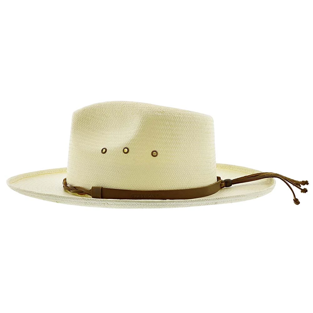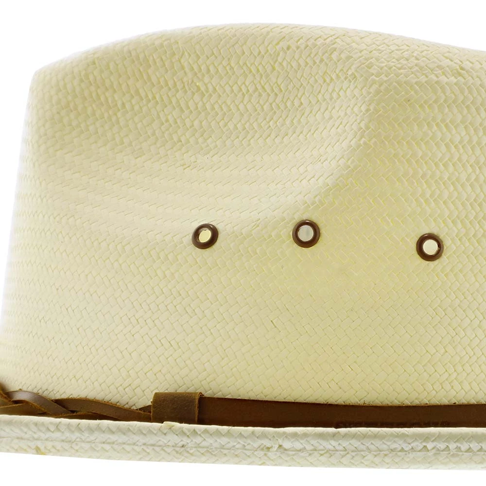 Flaunt your inner cowboy with the Helena Toyo Straw Western Hat by Stetson. Whether you’re going to a rodeo or going out to dinner, this hat provides a classic western style. Made of 100% toyo straw, this hat has a firm finish and is ventilated on the side of the crown with three, stylish eyelets. The leather band wrapped around the crown is braided and tied to the hat with tassels and a circular, wooden toggle to adjust the length. The band has the classic Stetson logo included on the side. Under the hat is the DRI-LEX® technology band that absorbs sweat.