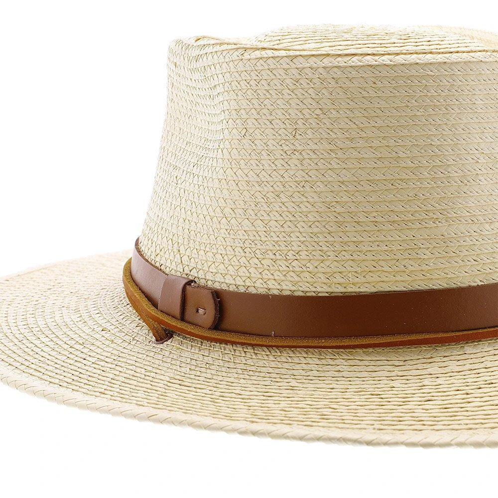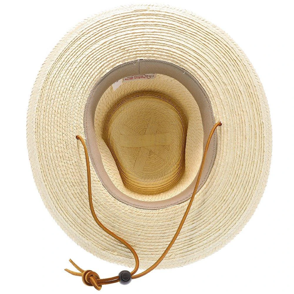 This natural hand-woven straw hat is a true masterpiece that combines utility and refinement in one stylish accessory. The Jacob’s Hat is a must-have accessory for savvy summer stylists who know how to dress for comfort and class. The light ivory tone of the straw contrasts beautifully with the rich, decadent caramel tone of the leatherette hatband. Also affixed to the hat is a brown suede chinstrap to ensure that the hat stays snug and secure on windy days. The brim width is approximately 3†while the crown stands at roughly 5†tall at its highest point.