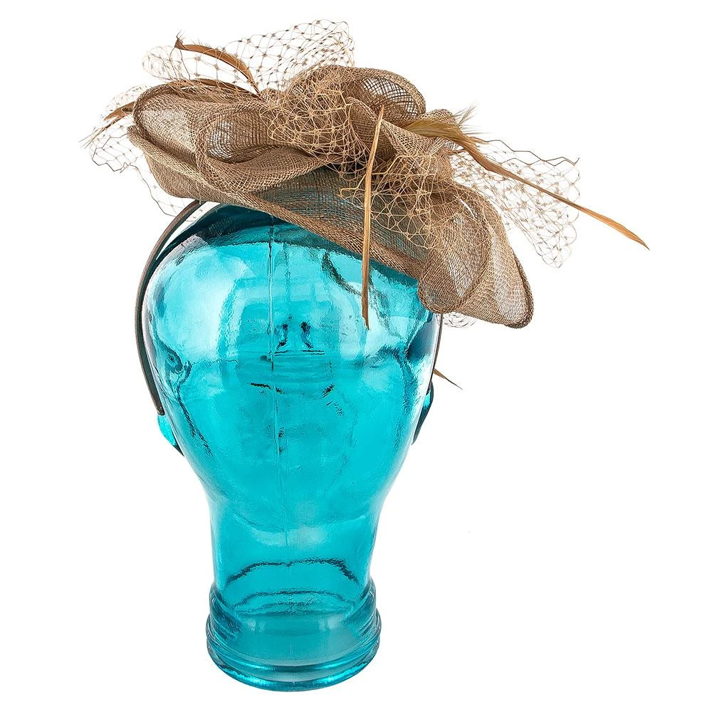 Jeanne Simmons Feather Taupe Sinamay Fascinator Hat