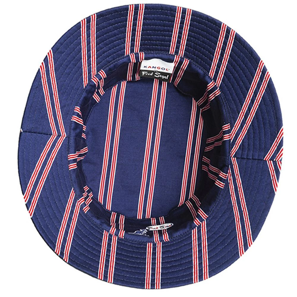 Kangol Fred Segal Tricolor Navy Stripe Reversible Cotton Bucket Hat