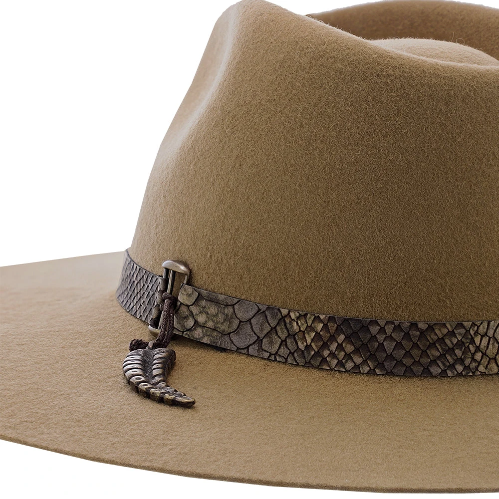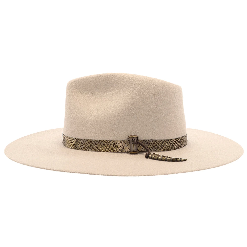 Looking for something fashionable and unique? The Biltmore Mad Rattle might be the right hat for you. The Vegan snake band with a tail-shaped charm definitely adds the right amount of flair. Sourced from only the finest materials, this quality-made wide brim hat should last for years to come.Â