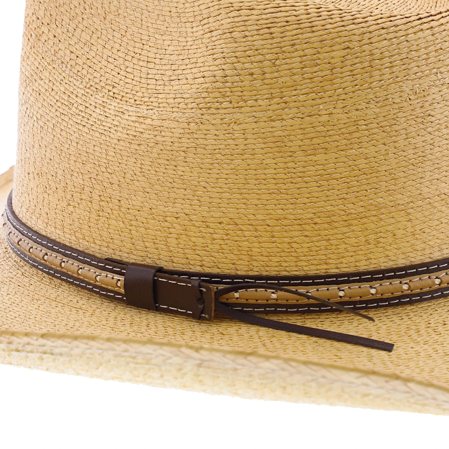 Sawmill Palm Leaf Western Hat is constructed of palm leaf straw and features a dri-lex interior sweatband and decorative leather hat band. Palm Leaf Straw.
