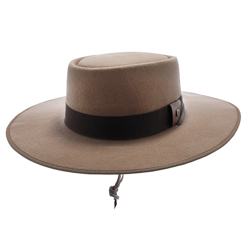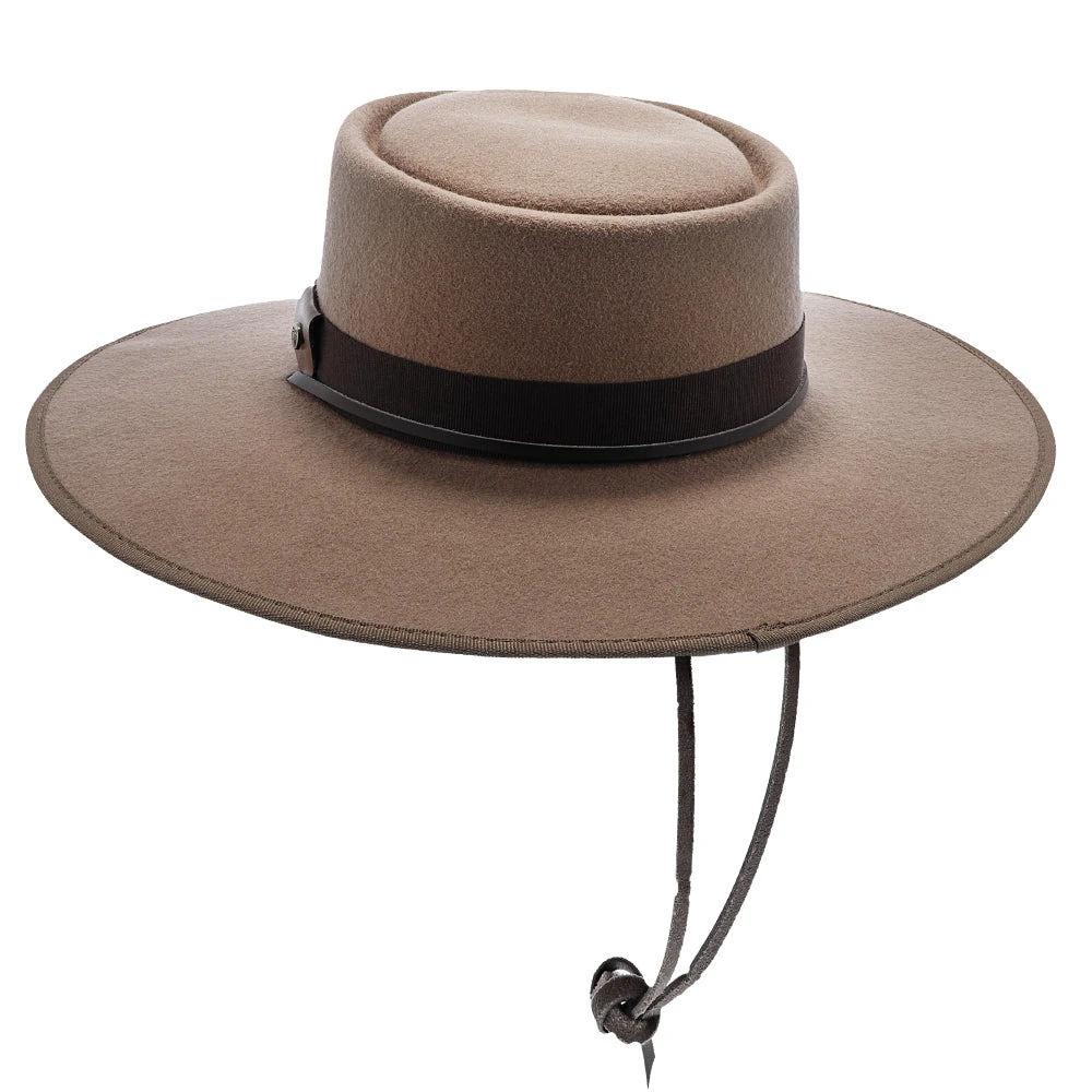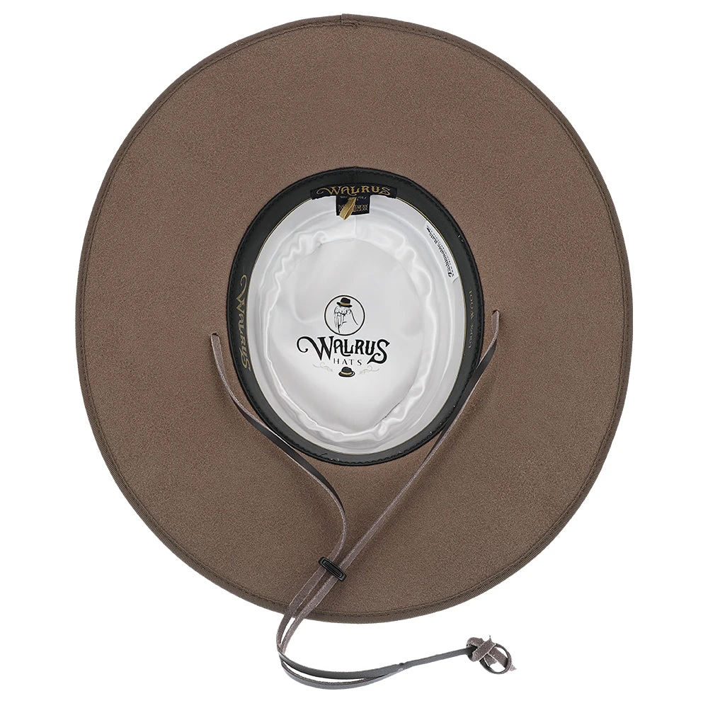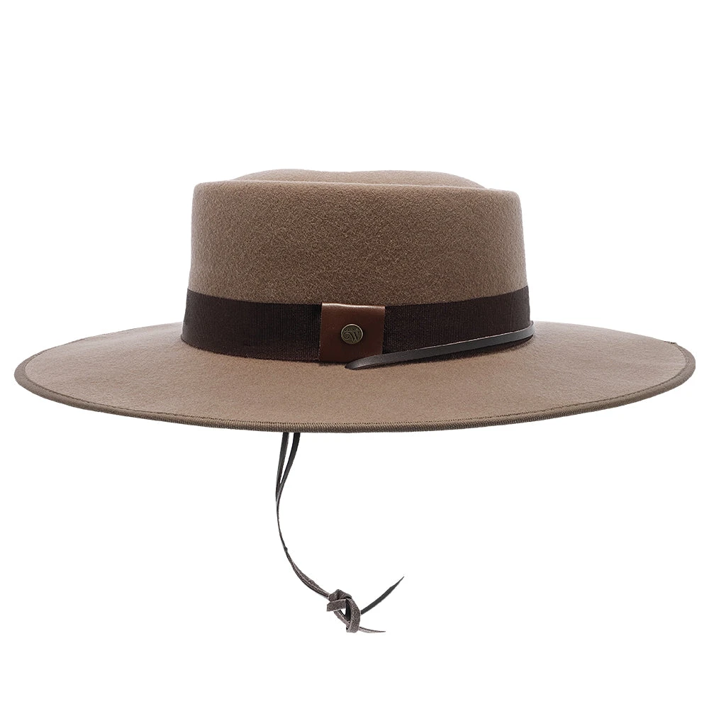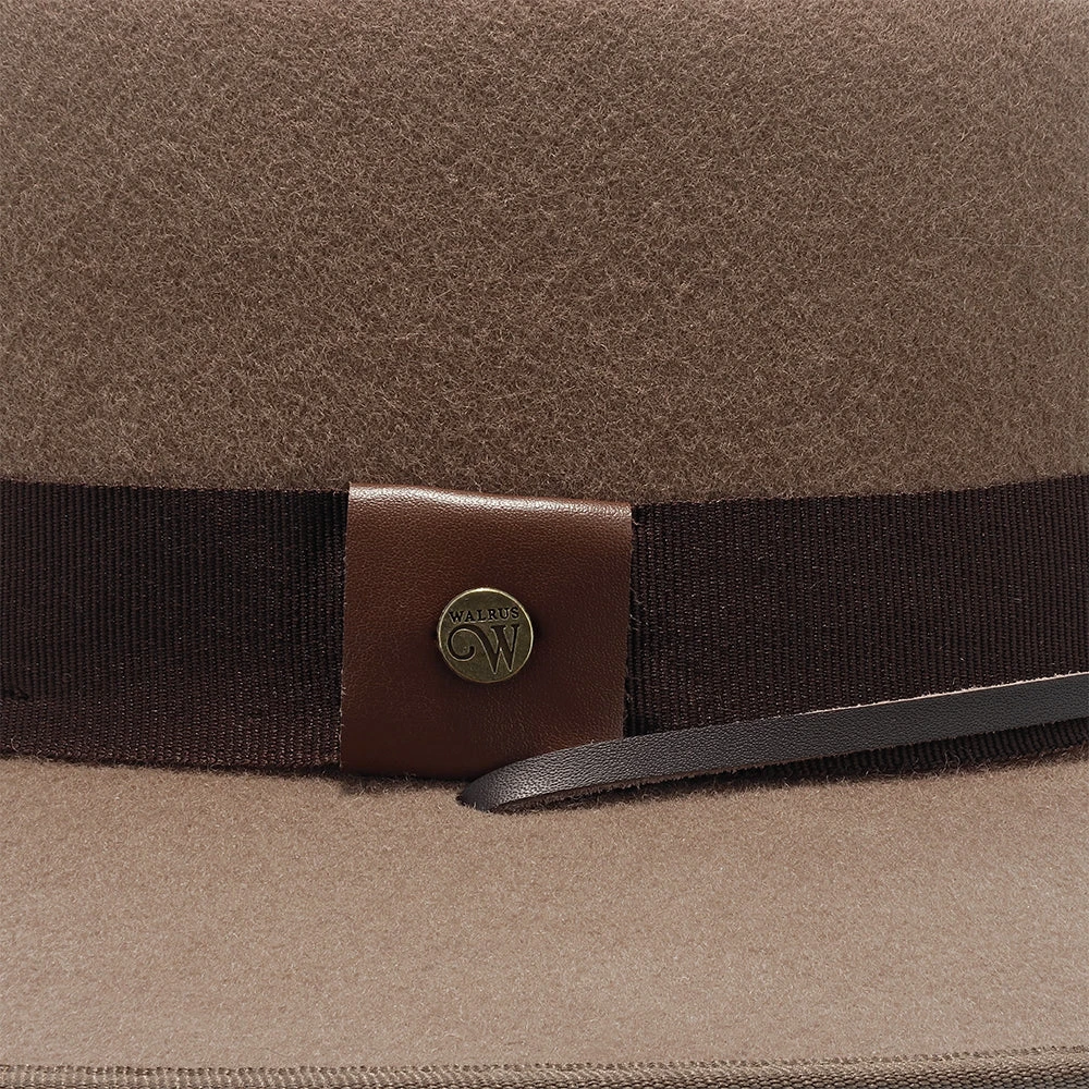 TBH -To Be Honest Walrus Bolero Hat is the newest to the Walrus Collection. This Walrus High Key Wool Bolero Hat is here to elevate your hat style. Featuring a telescope crown, brown hat band adorned with a leather matching square and matching brown edging on the brim. Finished with a chin strap that can be worn down or secured in the back when not needed makes this a perfect hat for those windy days or nights.