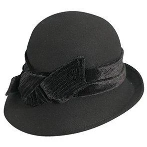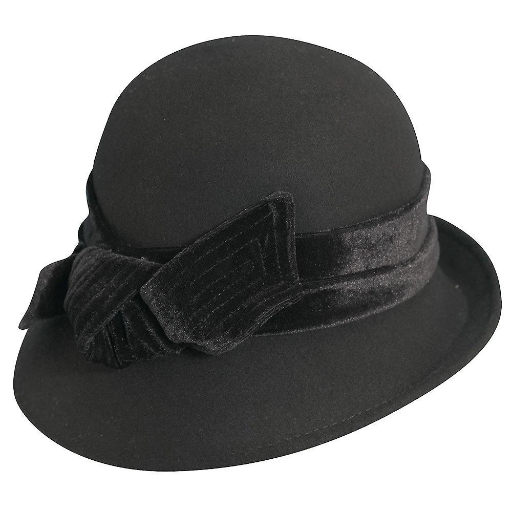 The Kinsey – Scala LF170 Black Wool Felt Cloche Hat W/ Velvet Bow & Adjustable Drawstring