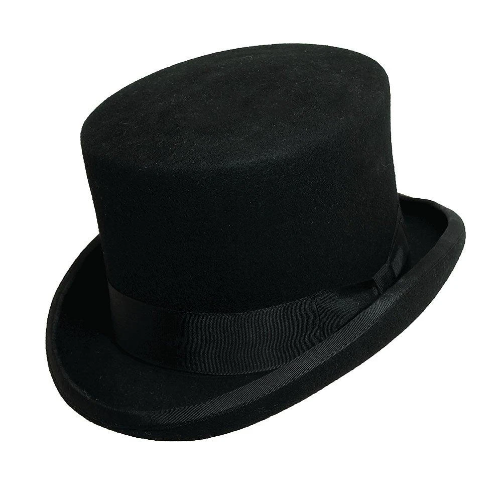 This is the “just right” top hat. This Scala wool felt top hat is five inches tall, the perfect height without being too steampunk short or Abraham Lincoln tall. In this top hat you can take yourself seriously and use for real formal events from weddings to fancy dinners, without being too obnoxious.
